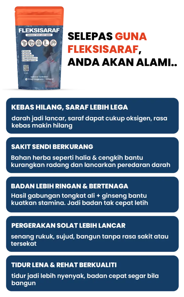 Testimonials found at https://fleksisaraf.senangbeli.com/ and/or from Herba Fleksisaraf are unverified results that have been forwarded to us by users of the product. The results may vary for each individual and are not intended to represent or guarantee that anyone will achieve the same or similar results within a specific period of time.